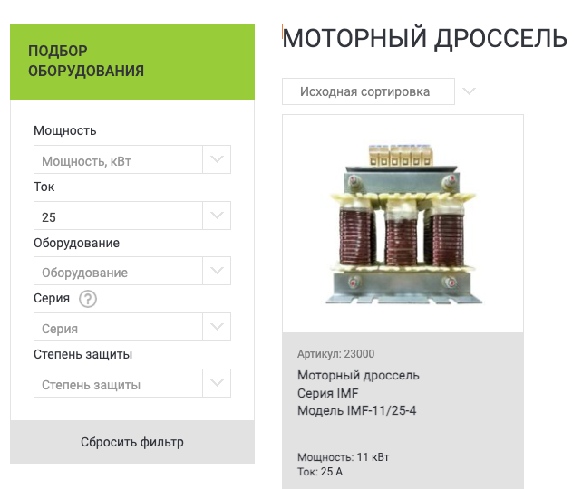 Также моторный дроссель можно выбрать с помощью фильтра на нашем сайте.