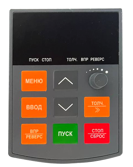 Светодиодная съемная однострочная LED-панель управления предназначена для программирования преобразователей частоты до 4.0 кВт включительно. Позволяет осуществлять параметрирование, запуск, останов, регулирование частоты и мониторинг параметров.