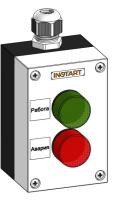 ПУ-2-800 – пульт управления, оснащённый индикацией в виде красной и зеленой лампы 230 В. Предназначен для индикации работы и аварии преобразователя частоты.