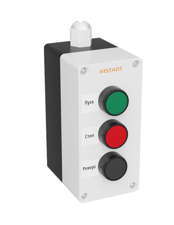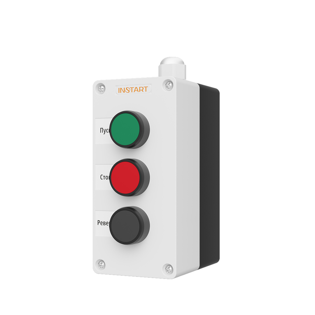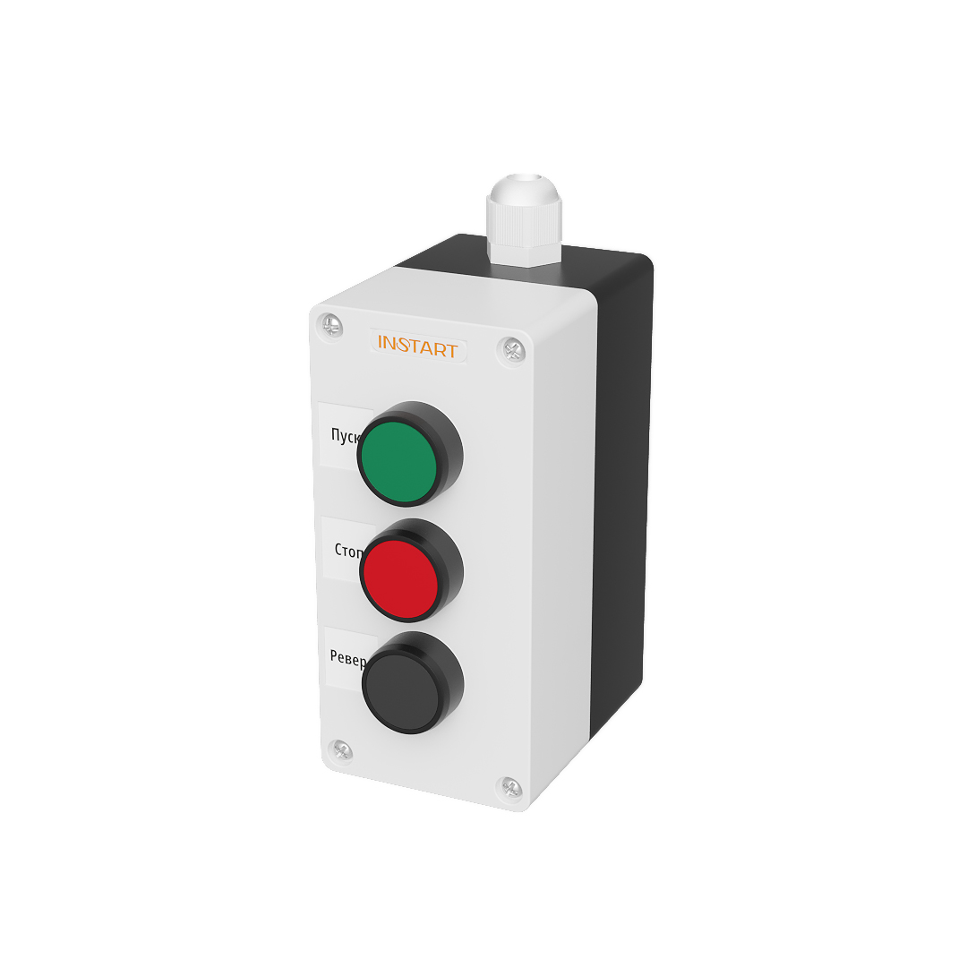 ПУ-3-050 – пульт управления, оснащённый кнопками пуск, стоп, реверс. Предназначен для управления пуском, остановом, направлением вращения электродвигателя.