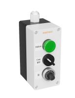 Пульт управления состоит из лицевой панели и задней крышки. На лицевой панели размещены световая индикация/индикатор и элементы управления (кнопки, переключатель и/или потенциометр), комбинация зависит от выбранной модели ПУ.