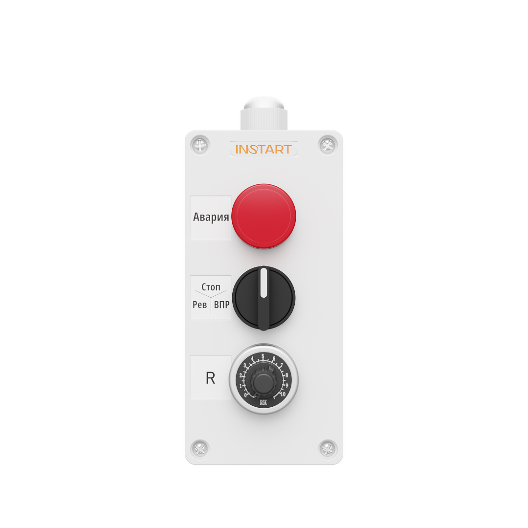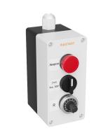 Пульт управления состоит из лицевой панели и задней крышки. На лицевой панели размещены световая индикация/индикатор и элементы управления (кнопки, переключатель и/или потенциометр), комбинация зависит от выбранной модели ПУ.