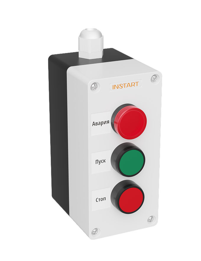 ПУ-3-430 – пульт управления, оснащённый кнопками пуск, стоп и индикацией, в виде красной лампы 24В. Предназначен для управления пуском, остановом электродвигателя, индикации аварии преобразователя частоты.