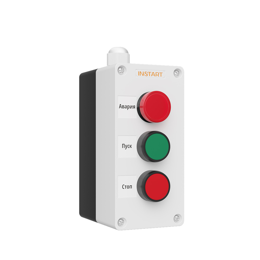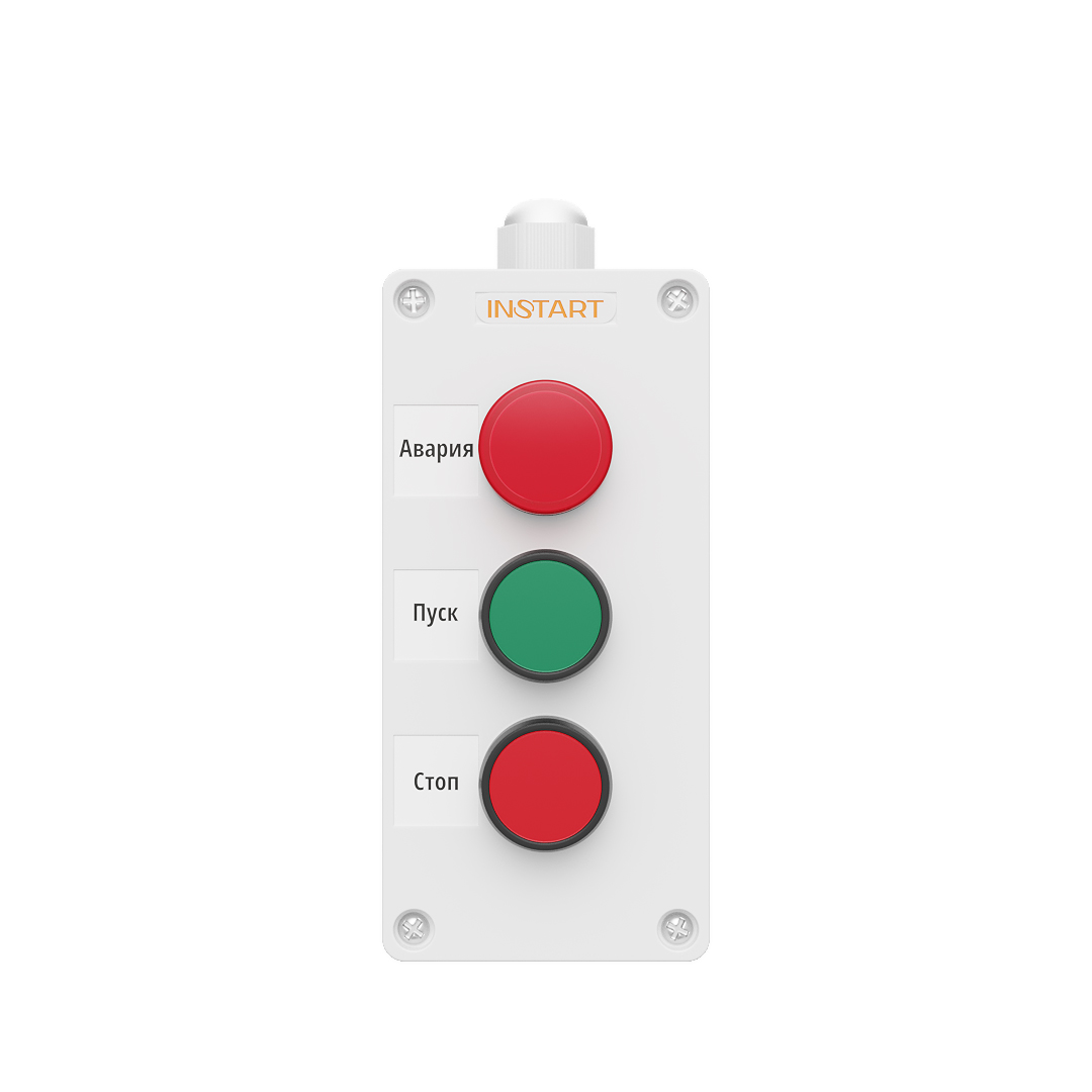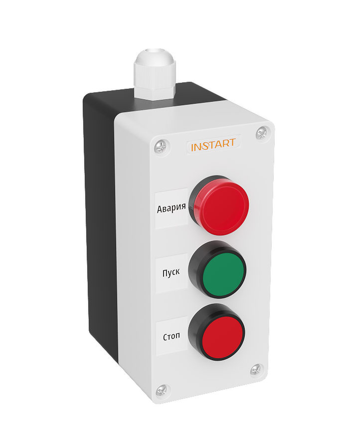 ПУ-3-530 – пульт управления, оснащённый кнопками пуск, стоп и индикацией, в виде красной лампы 220В. Предназначен для управления пуском, остановом электродвигателя, индикации аварии преобразователя частоты.