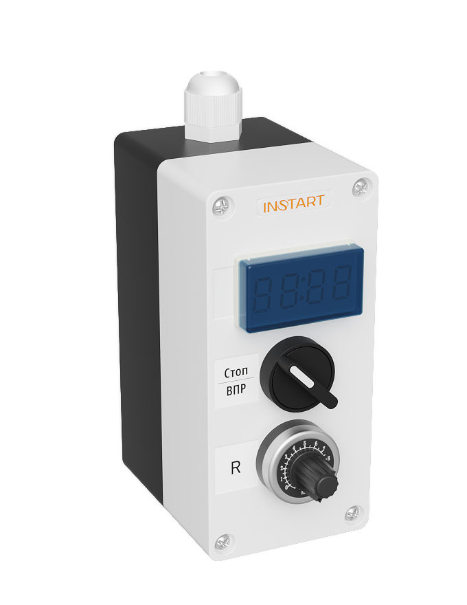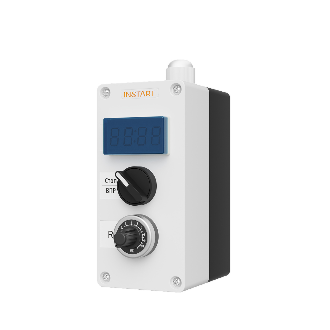 ПУ-3-611 – пульт управления, оснащённый измерителем аналоговых сигналов ИТП-11, 2-х позиционным переключателем, потенциометром. Предназначен для управления пуском, остановом изменения опорного сигнала частоты и отображения требуемых показателей.