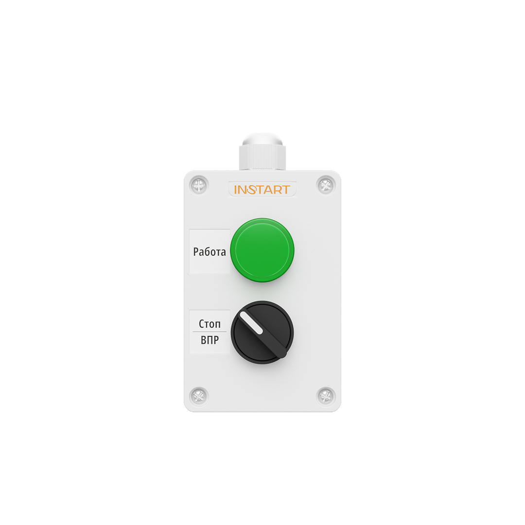 ПУ-2-110 – пульт управления, оснащённый 2-х позиционным переключателем и индикацией в виде зелёной лампы 24 В. Предназначен для управления пуском, остановом электродвигателя и индикации работы преобразователя частоты.