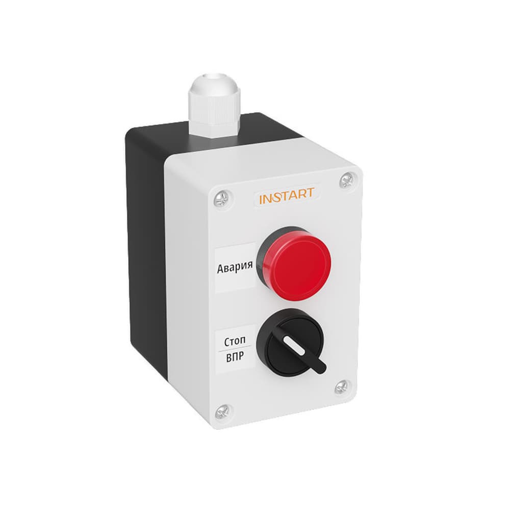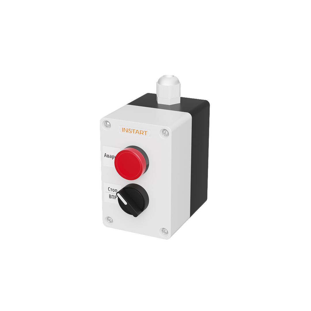 ПУ-2-410 – пульт управления, оснащённый 2-х позиционным переключателем и индикацией в виде красной лампы 24 В. Предназначен для управления пуском, остановом электродвигателя и индикации аварии преобразователя частоты.