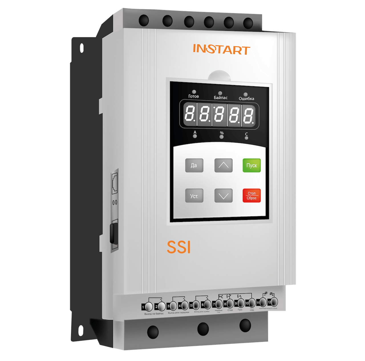 Устройства плавного пуска серии SSI предназначены для плавного запуска асинхронных короткозамкнутых электродвигателей путем постепенного повышения напряжения на статоре двигателя. Устройства плавного пуска серии SSI снабжены силовыми тиристорными модулями в каждой фазе, включенными по встречно - параллельной схеме, что обеспечивает управление всеми тремя фазами на протяжении полного периода пуска и останова двигателя. Устройства плавного пуска INSTART применяются в различных областях промышленности, везде, где необходим контролируемый пуск и останов двигателя. Данные устройства могут использоваться как в легких, так и в тяжелых условиях пуска.Гарантия 2 года