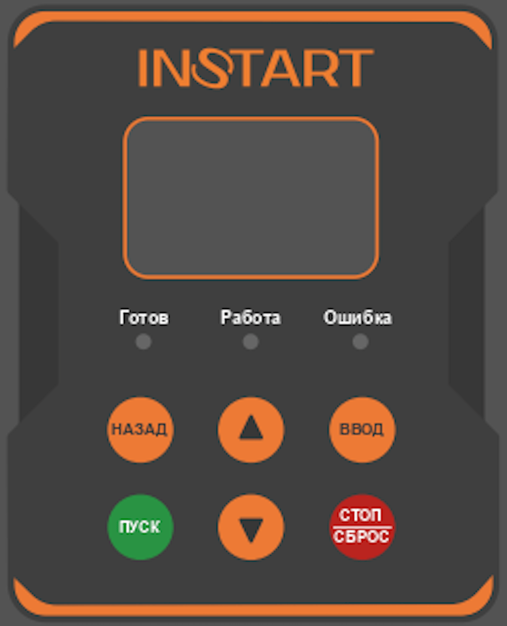 Выносная LCD-панель управления является русскоязычной, предназначена для программирования устройства плавного пуска. Панель позволяет осуществлять запуск, останов, регулирование частоты и мониторинг параметров.